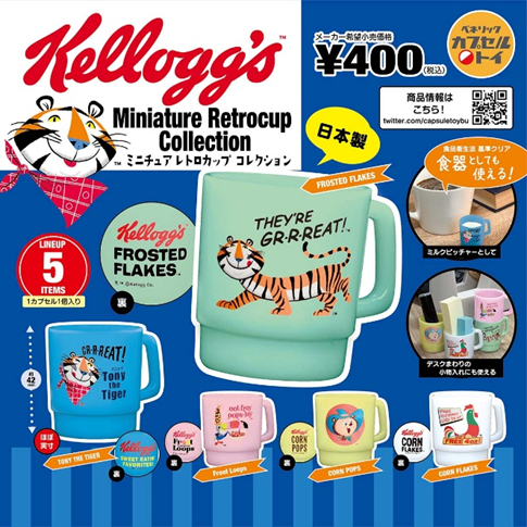 世界的な食品メーカー「ケロッグ」のキャラクターをあしらったミニチュアサイズのカップがカプセルトイになって登場!