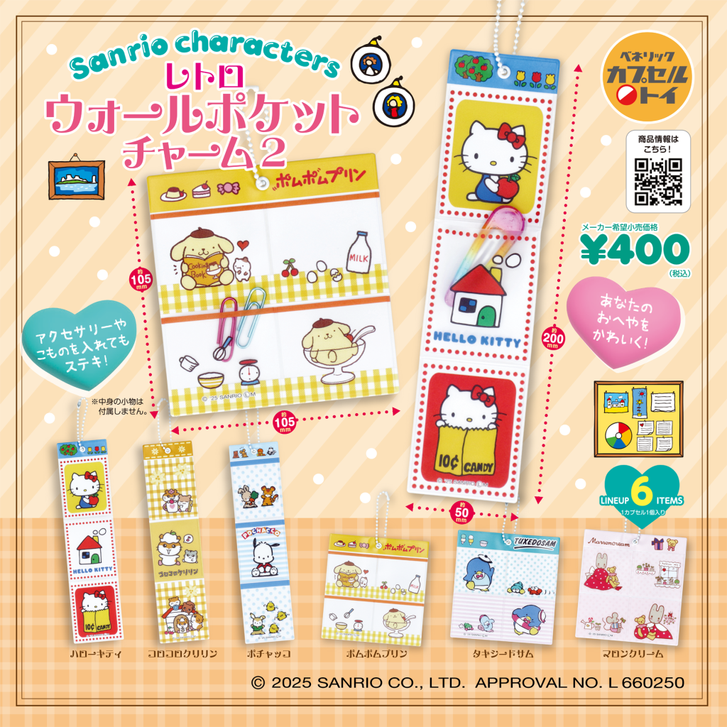 2025年10月発売の新商品「サンリオキャラクターズ レトロウォールポケットチャーム2(全6種)」