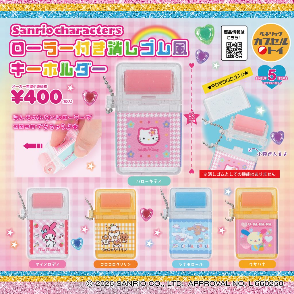 2026年1月発売の新商品「サンリオキャラクターズ ローラー付き消しゴム風キーホルダー(全5種)」