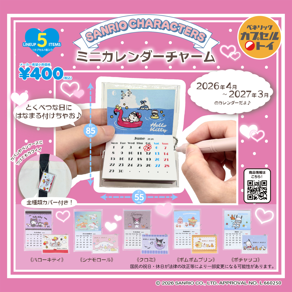 2026年3月発売の新商品「サンリオキャラクターズ ミニカレンダーチャーム(全5種)」