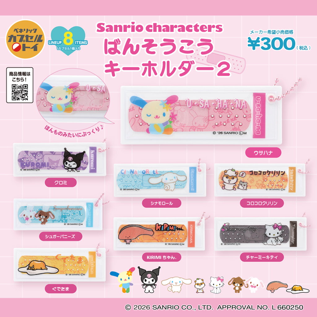 2026年3月発売の新商品「サンリオキャラクターズ ばんそうこうキーホルダー2(全8種)」