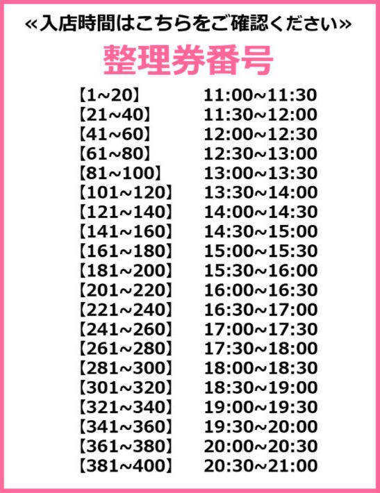 3月24日(月)以降はフリー入店を予定しておりますが、沢山のお客様がご来店の際は、店頭にて整理券を配布させていただきます。