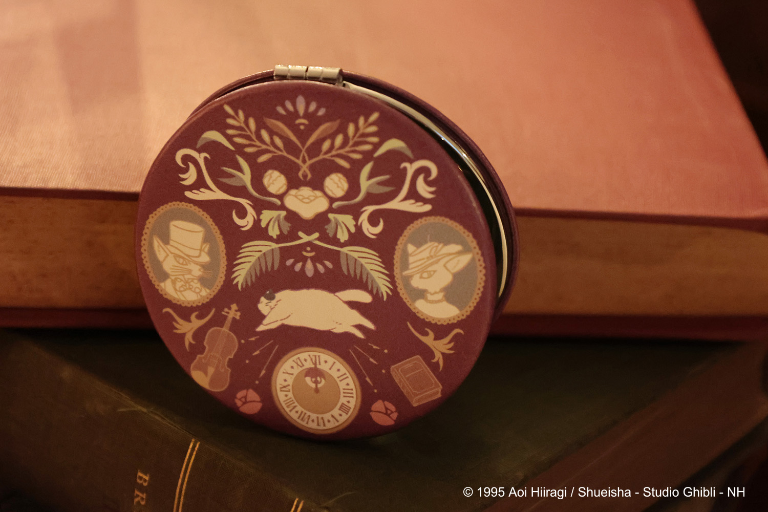 そんな地球屋に飾られたお花やバロンとルイーゼ、ヴァイオリンや本など映画を彩るモチーフを散りばめたデザインのルームウェア、枕・掛け布団カバー、巾着、コンパクトミラーの全4種が登場。