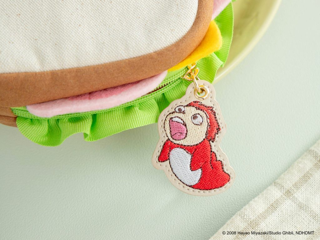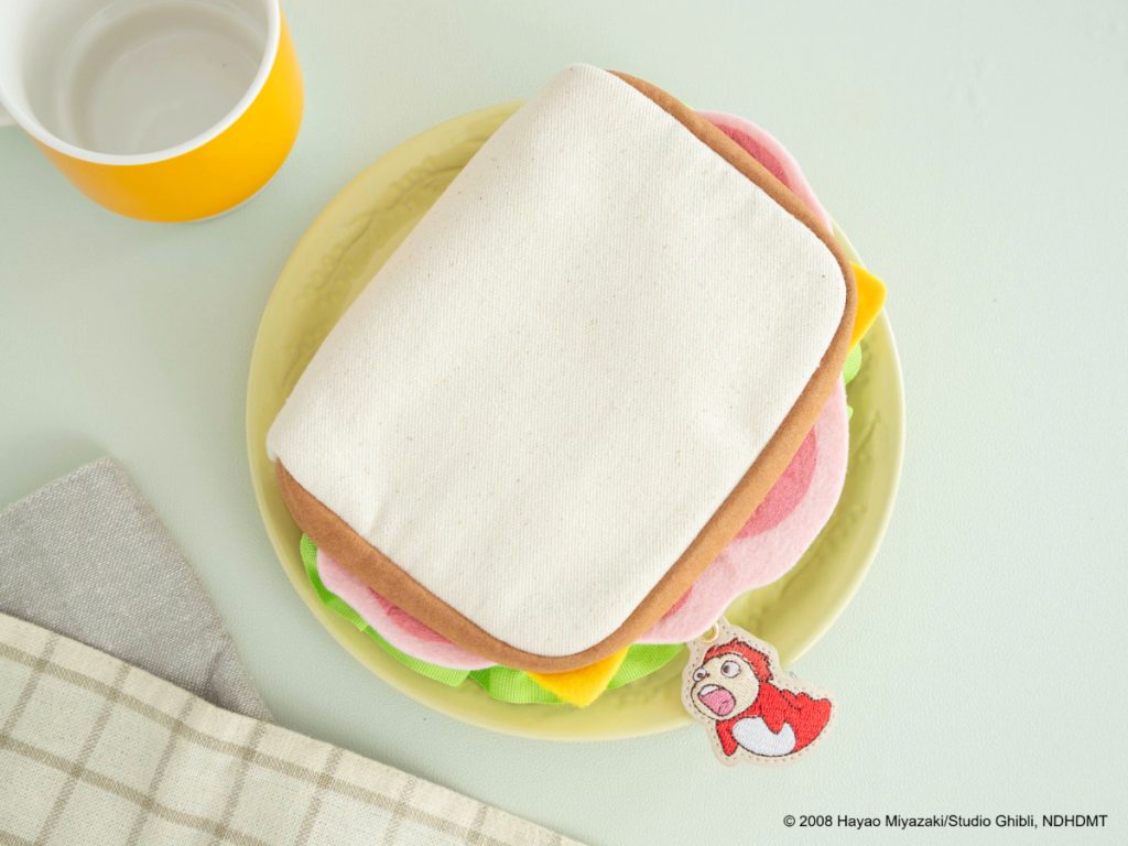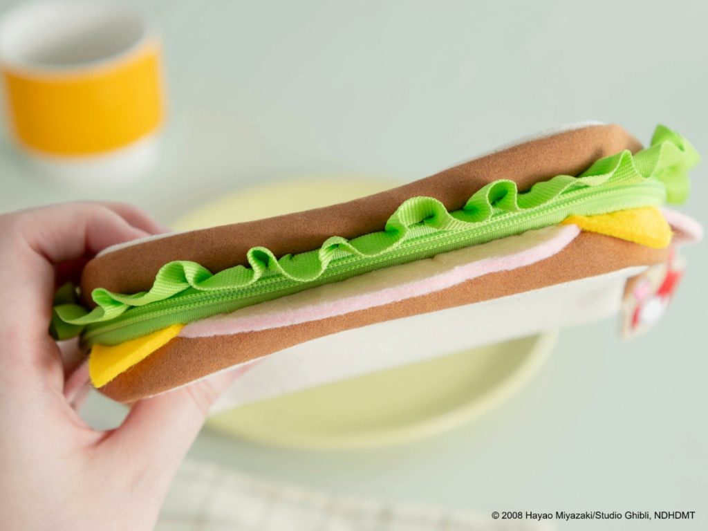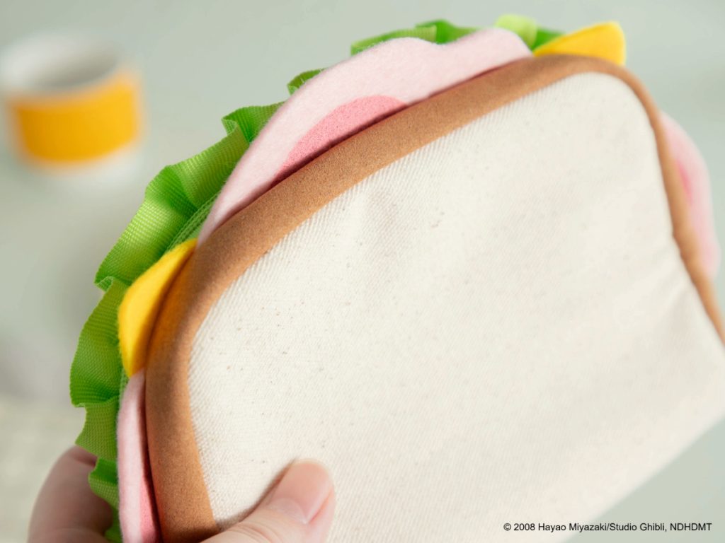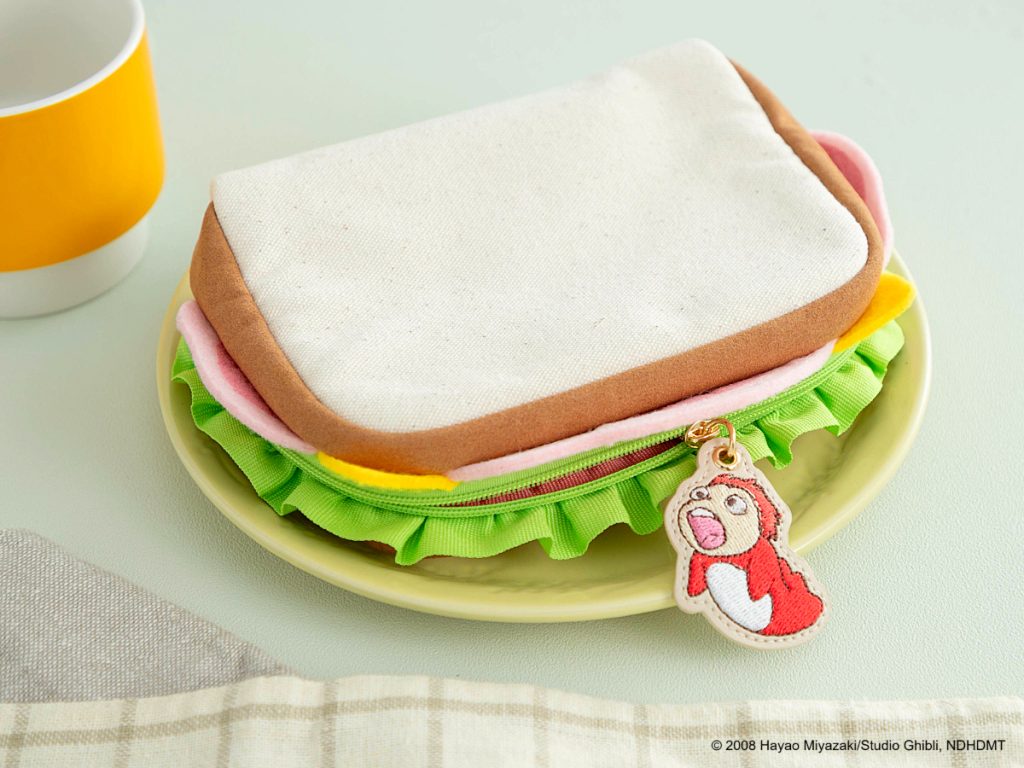 いえいえ、こちらは『崖の上のポニョ』の名シーンから生まれた、遊び心たっぷりのポーチ。ポニョをのせて車の中で食べたハムサンドをモチーフに、細部までこだわって再現しました。