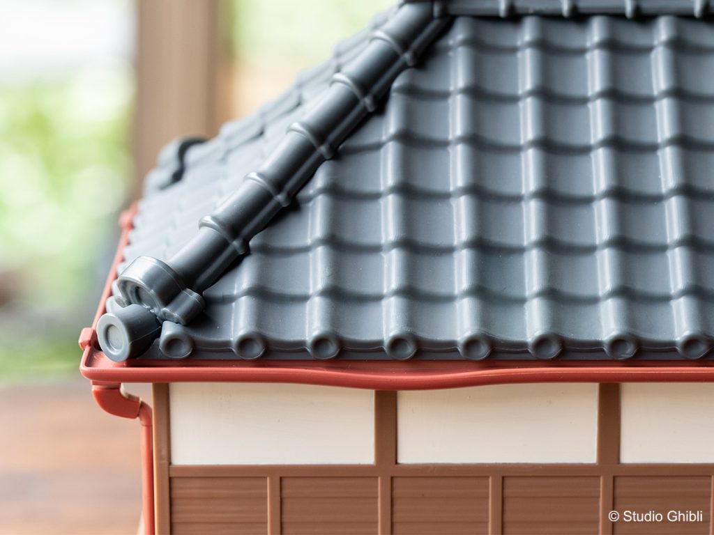長い間誰も住んでいなかった古い家を表現するために、雨どいを歪ませたり、瓦が少し日焼けしていたり、造形や着色でのエイジング加工も施されています。