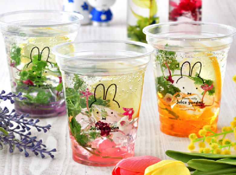 「フラワーミッフィー ジュースガーデン」より、ミッフィーと「さくら」がテーマの期間限定ドリンク2種が新登場