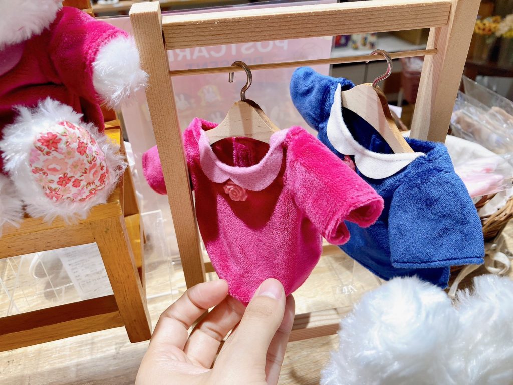 別売りのお洋服も、ベロア生地の秋らしいシックなデザイン。襟元のボタンもローズの形です。通常の着せかえほわほわぬいぐるみにも着せられますよ。