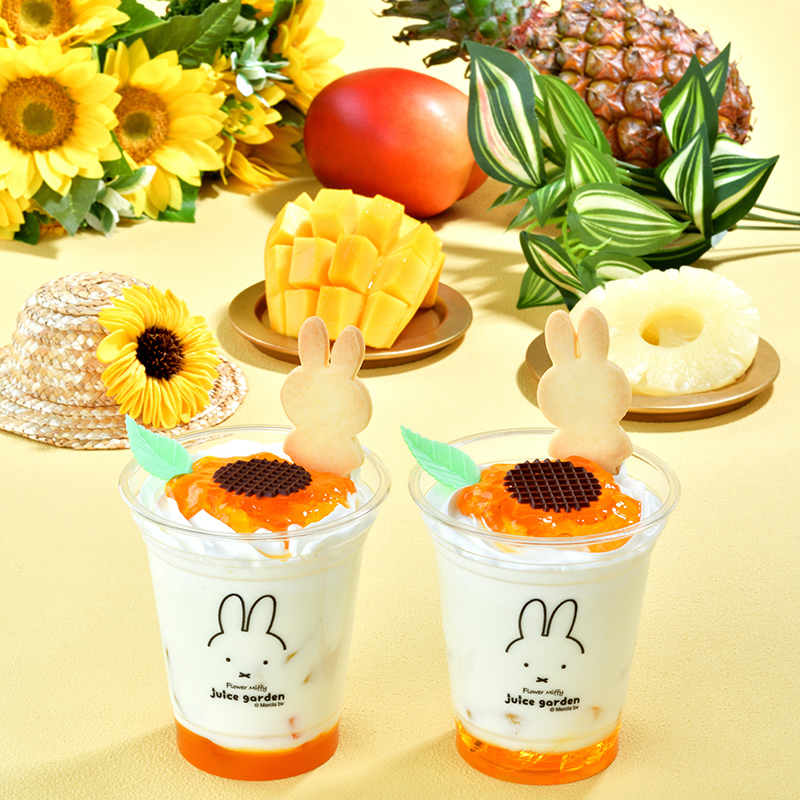 フラワーミッフィー ジュースガーデンにこれからの季節にぴったりの、ひまわりが咲くヨーグルトドリンクが新登場🌻