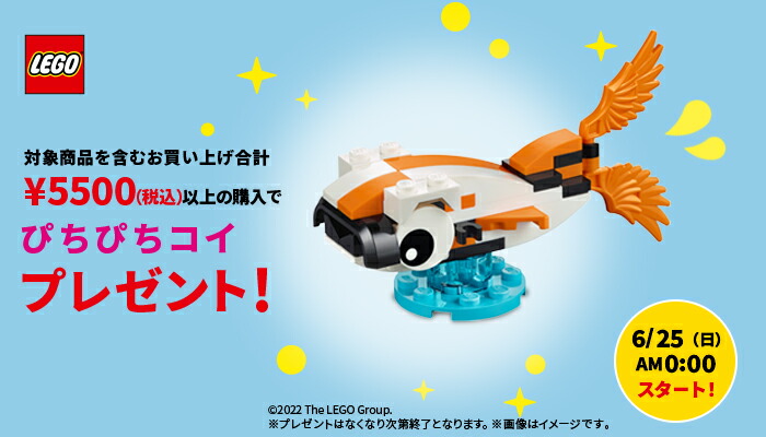 ベネリックレゴストア楽天市場店の店内の商品を1回のお会計につき合計5,500円(税込)以上お買い上げで、ぴちぴちコイをおひとつをプレゼント!