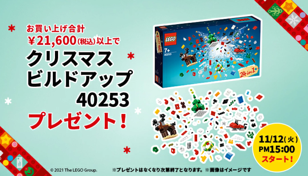1回のお会計につき合計21,600円(税込)以上の購入で、「40253 クリスマスビルドアップ」をプレゼント!