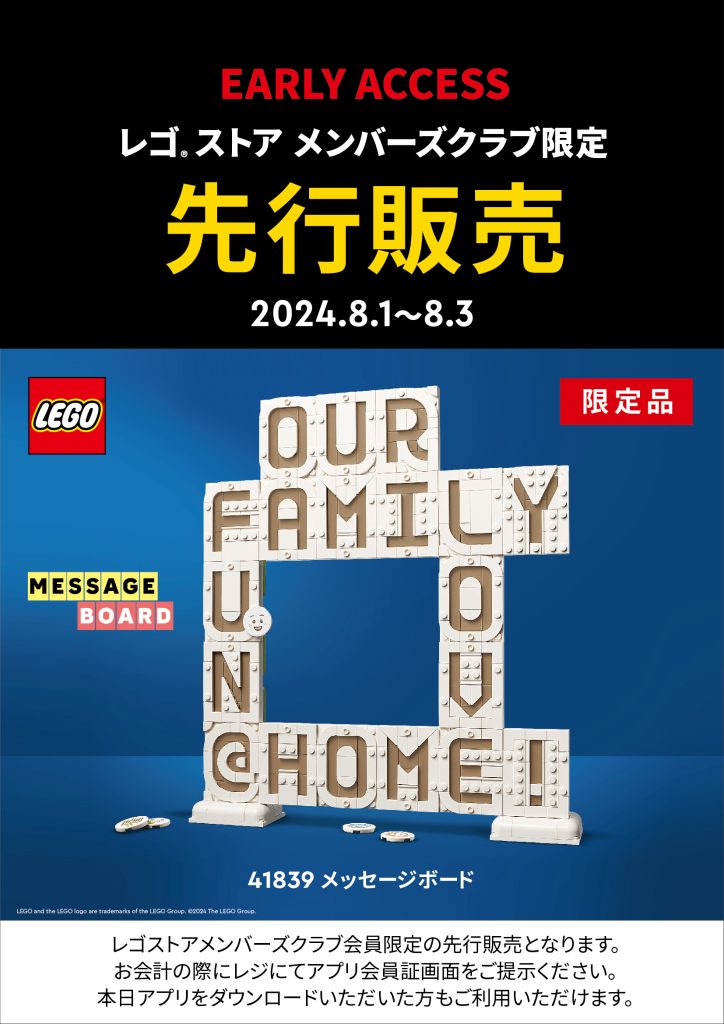 8月4日(日)の通常販売に先駆けて、レゴ®ストア メンバーズクラブ会員を対象に8月1日(木)から先行販売を開始いたします。