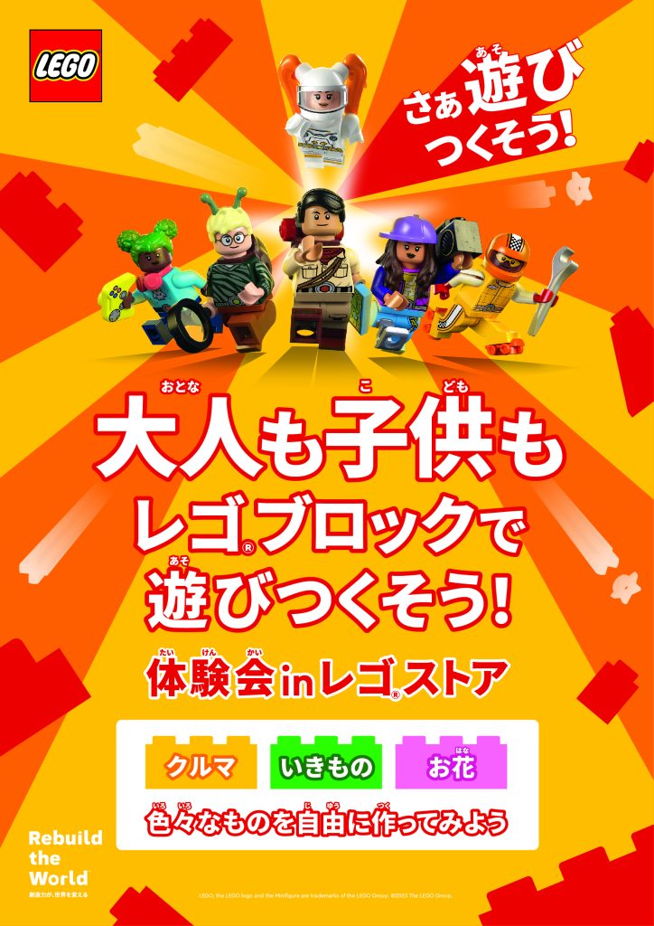 レゴストアでは、本キャンペーンのもと、大人も子供もレゴブロックで遊びつくせる体験会を10月3日から開始します。