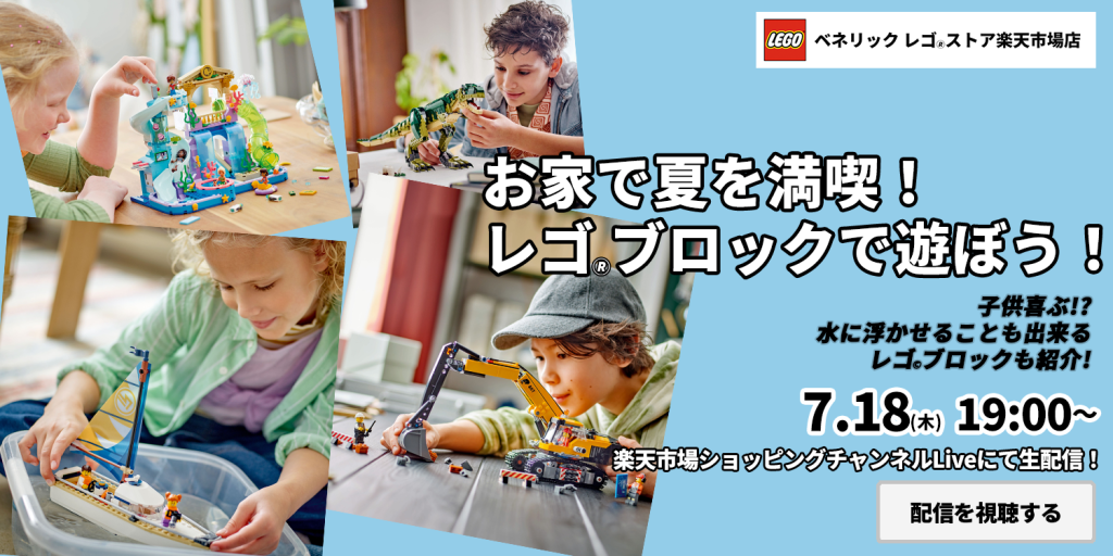 【ベネリックレゴストア楽天市場店】 レゴ社に認定頂いたオンラインショップで、ほかのお店では手に入れずらいブロックやキーリングなども充実♪ 遊び方の提案や、様々な世代に向けた商品のラインナップを取り揃えております。 購入期間や金額によって、お買い上げ特典もご用意しております。 7/18(木) 19時00分からの配信です☆ コメントや質問、ハート、沢山お待ちしております!