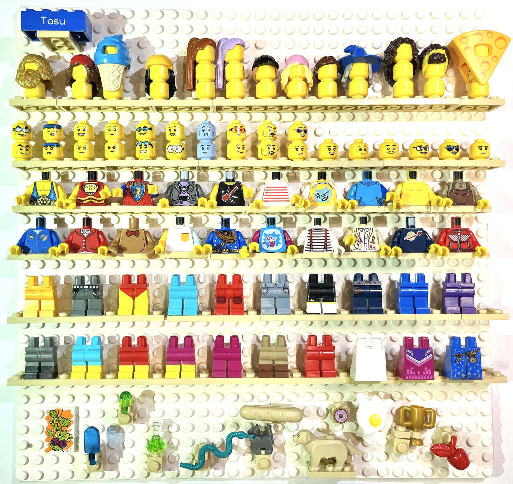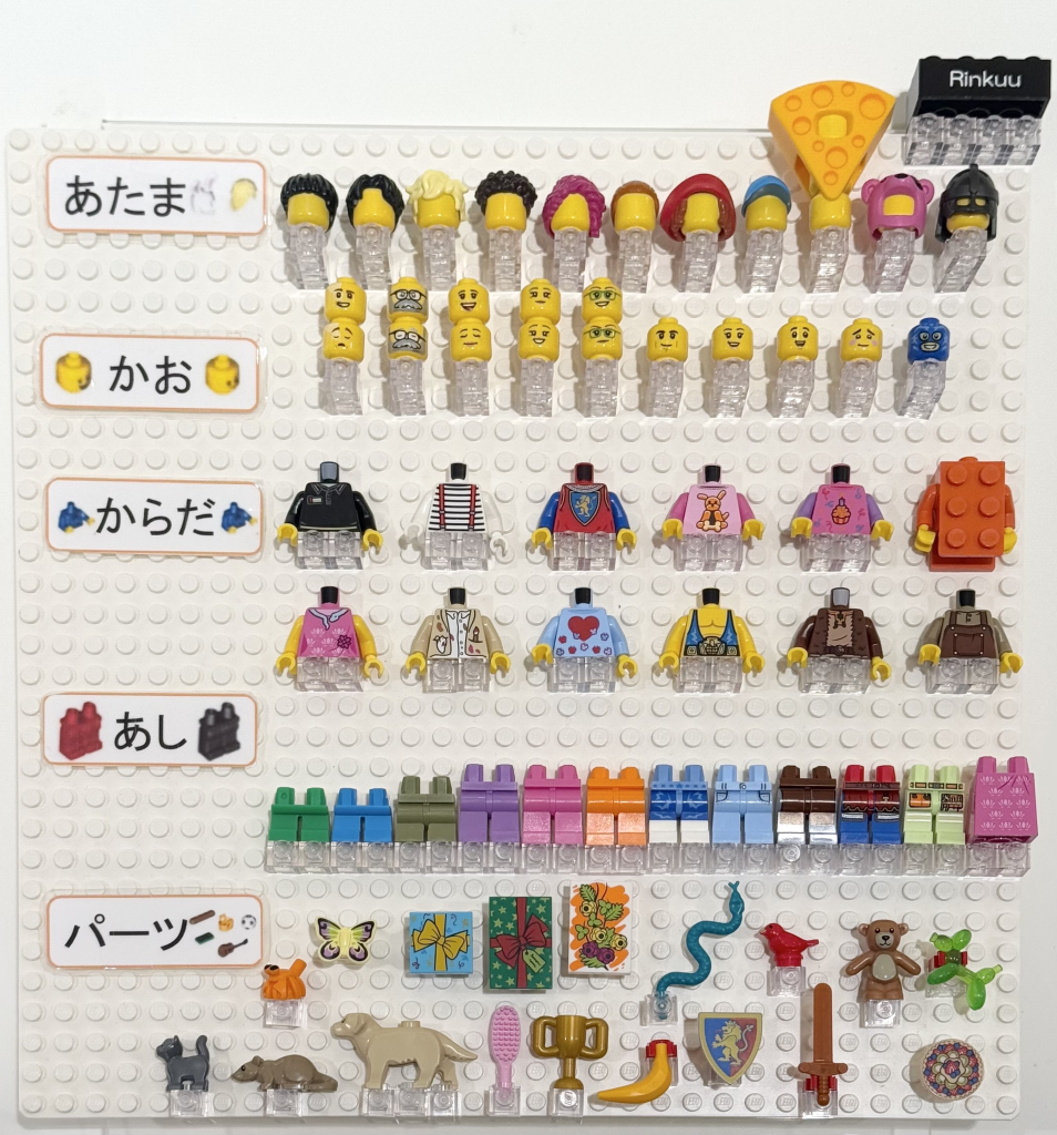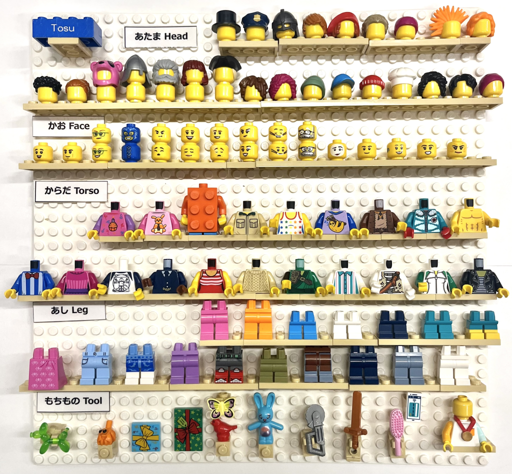あたま・かお・からだ・あしのパーツと、持ち物パーツを自由に選んで、自分だけのオリジナルミニフィギュアを作ってみよう!