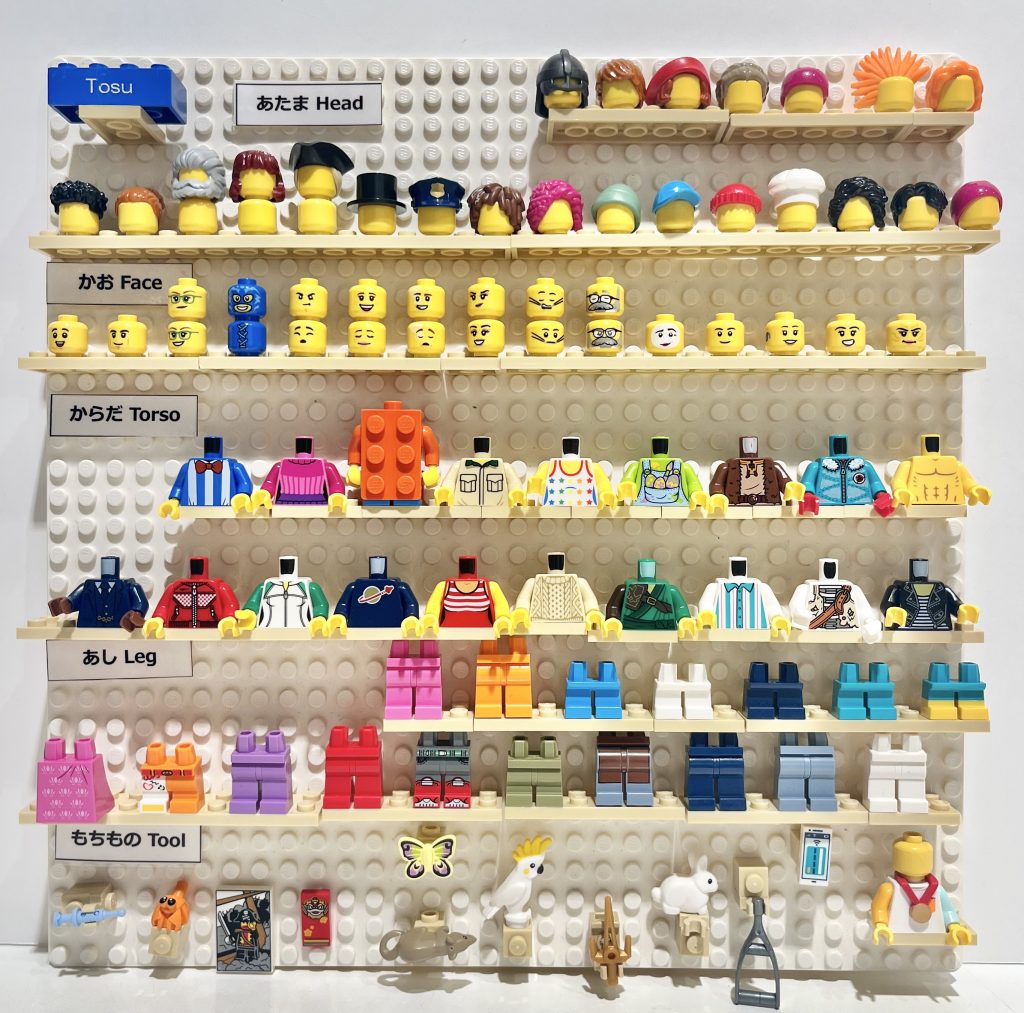 あたま・かお・からだ・あしのパーツと、持ち物パーツを自由に選んで、自分だけのオリジナルミニフィギュアを作ってみよう!