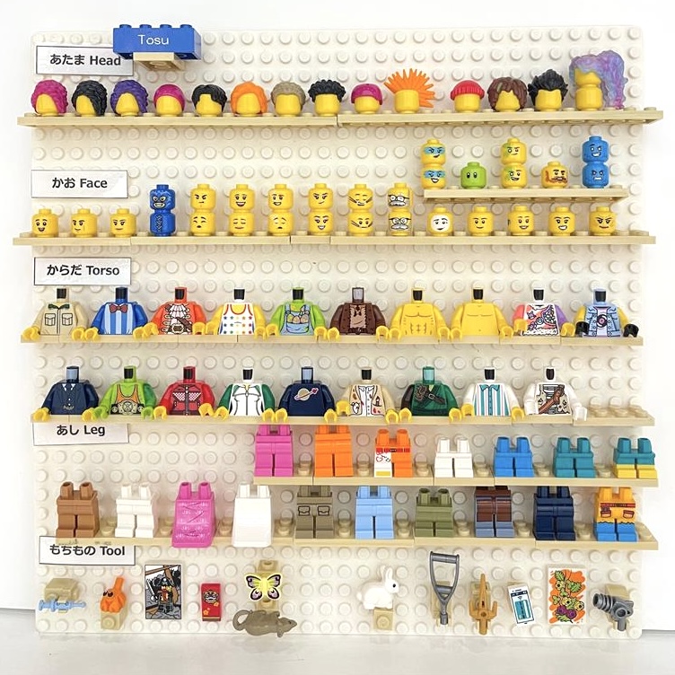 あたま・かお・からだ・あしのパーツと、持ち物パーツを自由に選んで、自分だけのオリジナルミニフィギュアを作ってみよう!