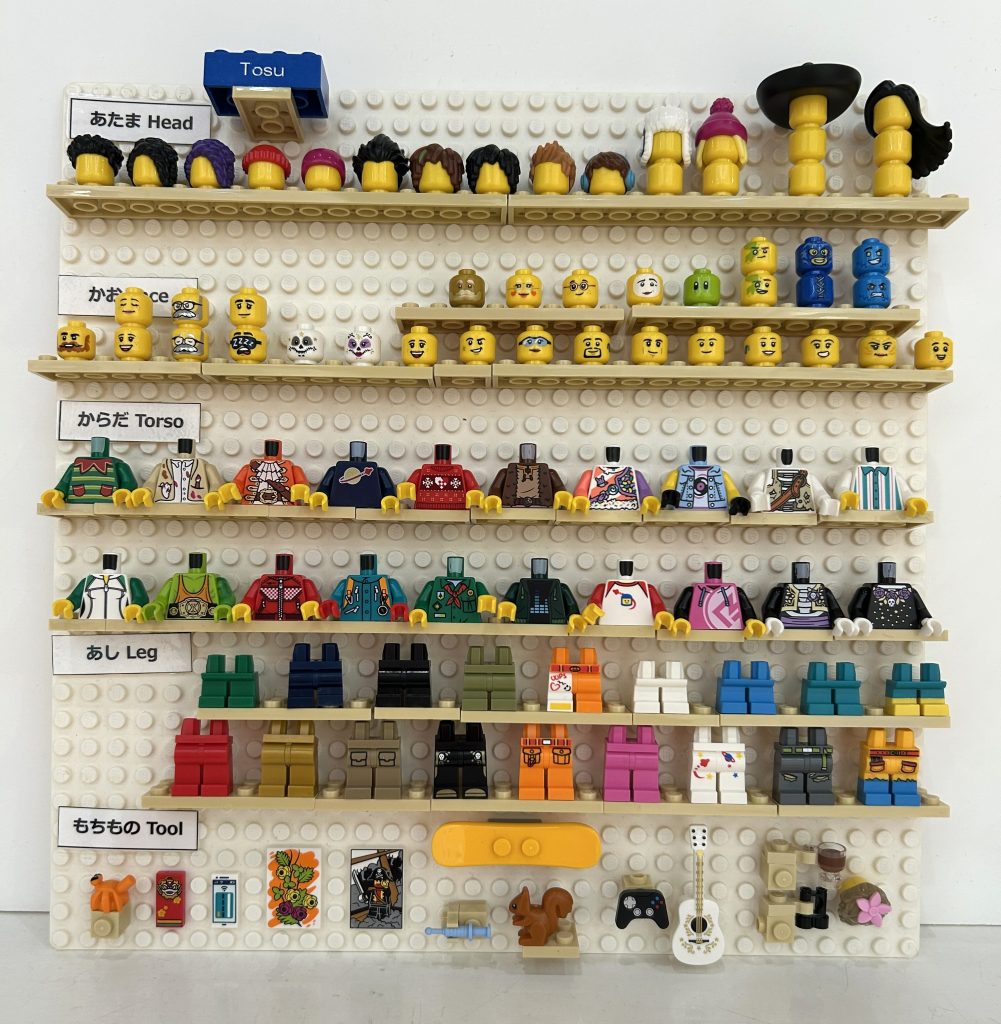 あたま・かお・からだ・あしのパーツと、持ち物パーツを自由に選んで、自分だけのオリジナルミニフィギュアを作ってみよう!