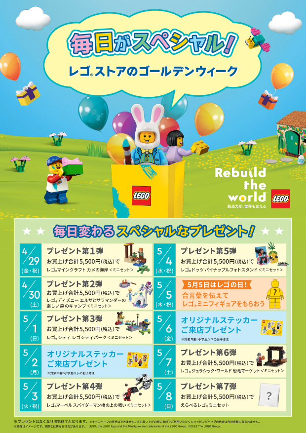 4月29日(金)より、全国のレゴ®ストア、レゴ®クリックブリックでは、10日間、毎日変わるお楽しみをご用意してみなさまをお待ちしています。