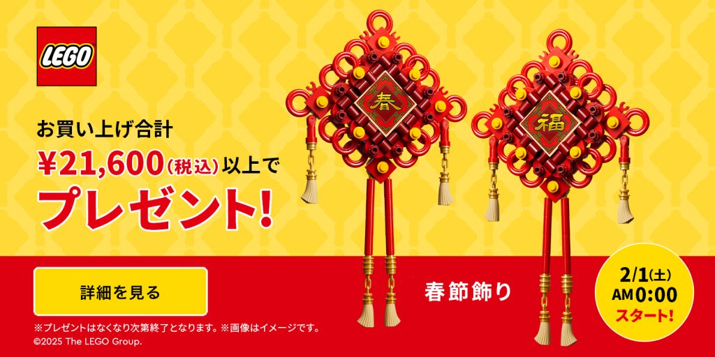 レゴ®ストアでレゴ®製品を1回合計21600円(税込み)以上お買い上げで、「春節飾り」をプレゼント。