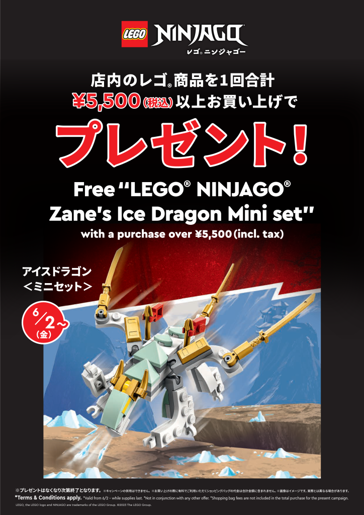 レゴ®ストアの店内の商品を1回のお会計につき合計5,500円(税込)以上お買い上げで、アイスドラゴン〈ミニセット〉をおひとつをプレゼント!