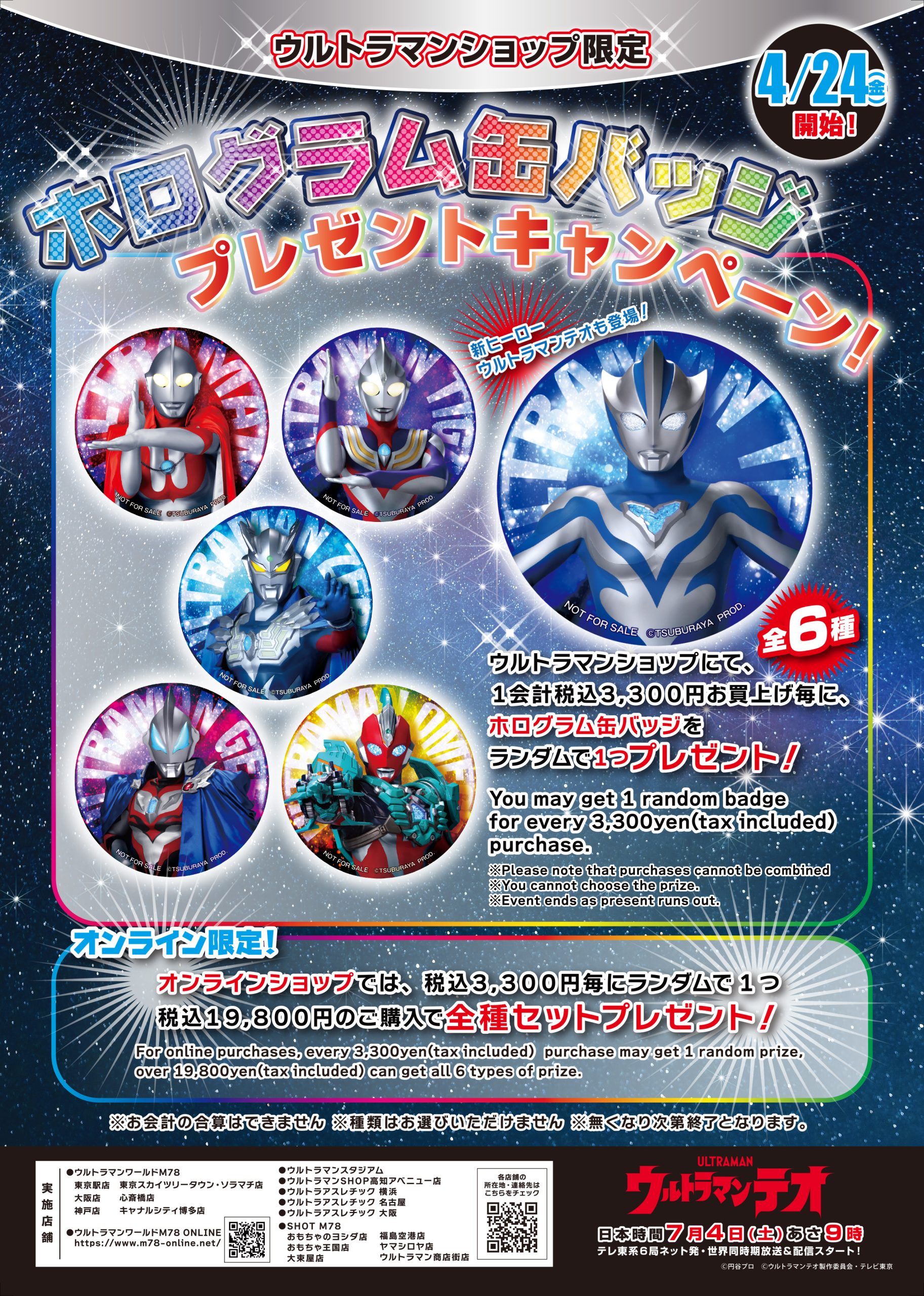 ウルトラマンショップ限定「ホログラム缶バッジプレゼントキャンペーン」4月24日(金)よりスタート!