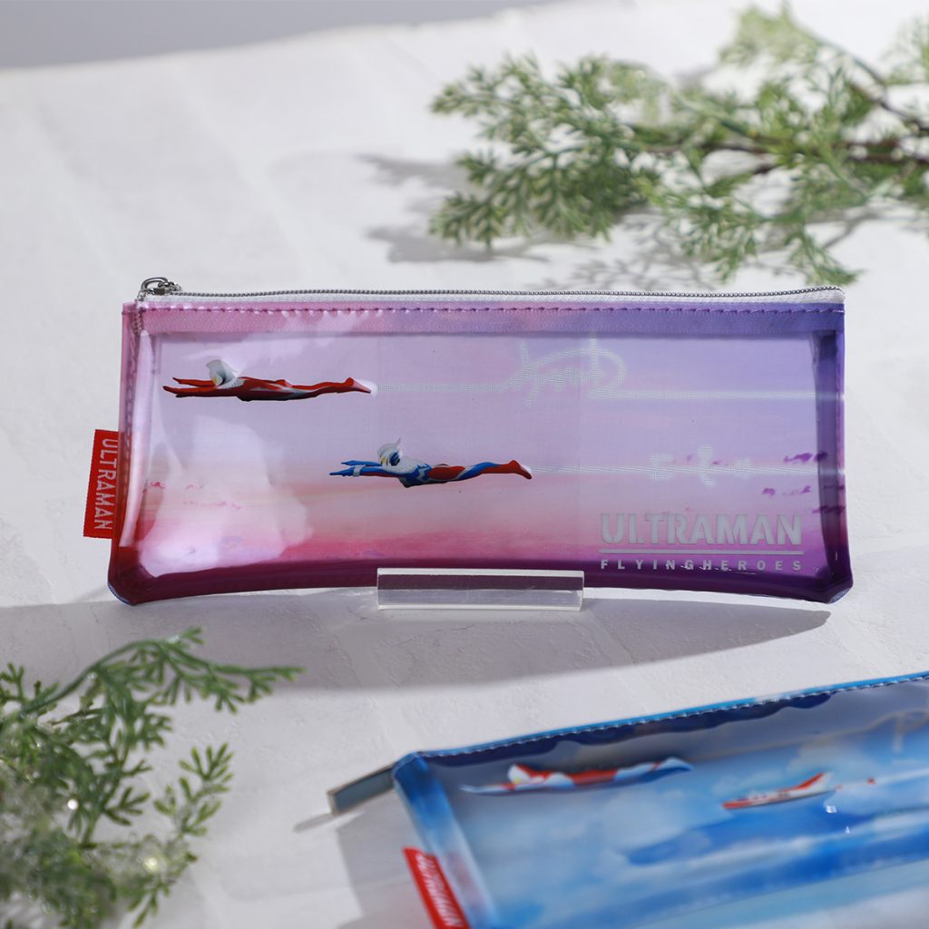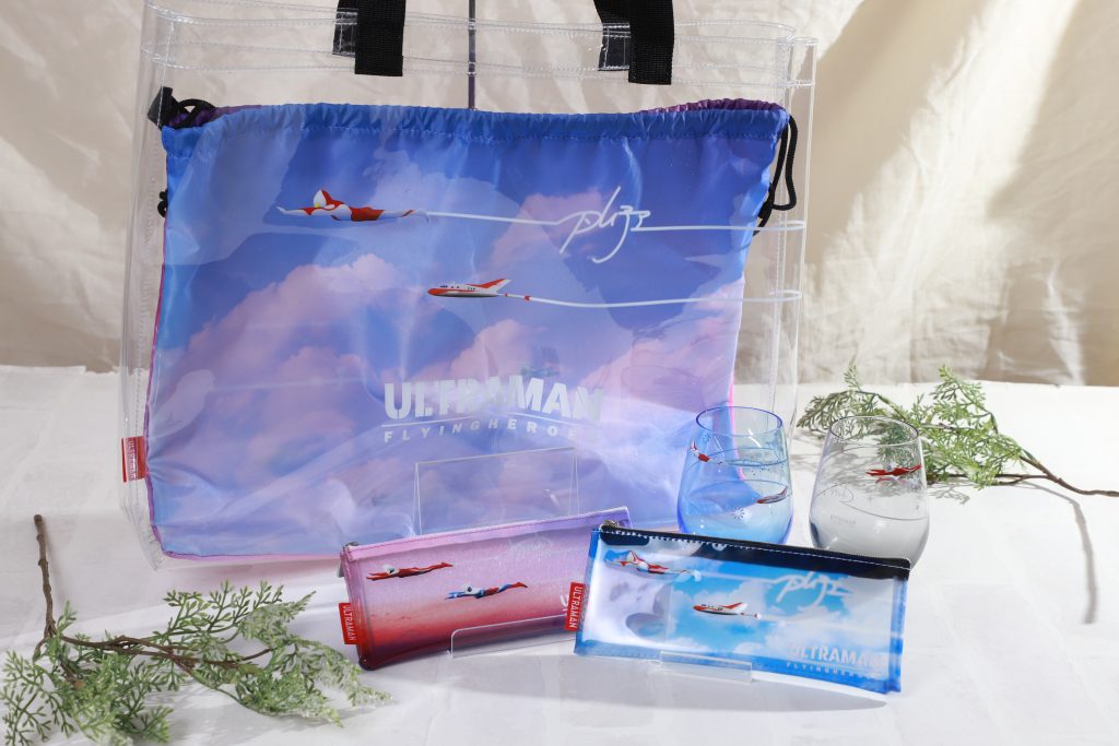 ラインアップは、巾着と重ね使いでき、裏表で違うデザインが楽しめるクリアトートバッグ、Tシャツ(2種)、クリアポーチ(2種)、ラウンドグラス(2種)の全7種です。移り変わる空をさわやかに飛ぶウルトラヒーローの姿が印象的な「SORAシリーズ」をぜひ店頭やオンラインショップでチェックしてみてくださいね。
