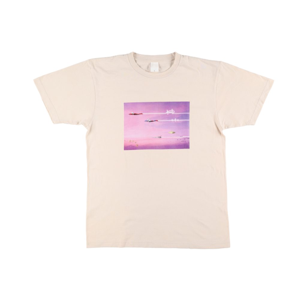 カラフルな色で表現された空にが飛行機雲をたなびかせて飛んでいるような“SORA・Blue”と、薄紫色の空をウルトラセブンとウルトラマンゼロの親子が飛んでいる“SORA・Lilac”の2柄展開です。シンプルながらも実写の空の色が美しく、どのようなコーデにも合わせやすいTシャツです。