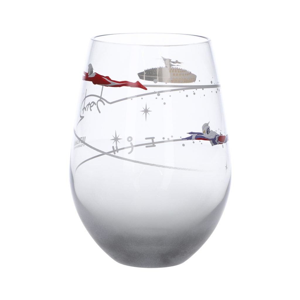 青空や夜空をイメージした美しいグラデーションの上にウルトラヒーローや宇宙船をらせん状にプリントしたグラスです。ベースとなるグラスは機能性とデザインを兼ね備えた、グッドデザイン賞も受賞している「ウォーターバリエーション」を採用しており、強化ガラス仕様のため、丈夫で長くご使用いただけます。