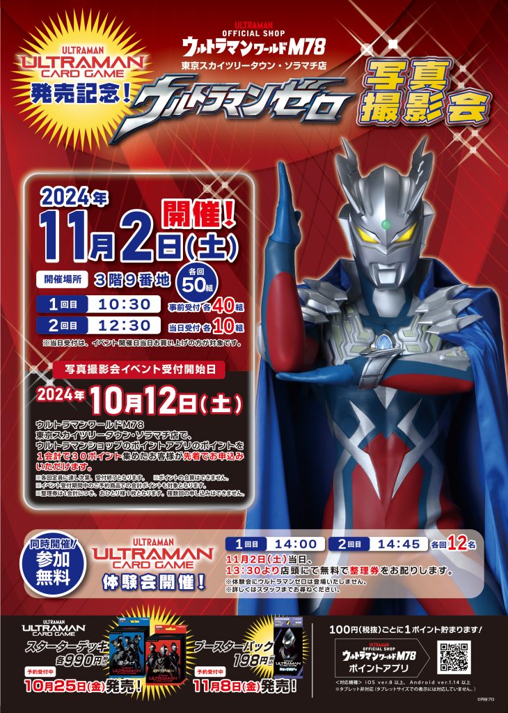 東京ソラマチでは、「ウルトラマン カードゲーム」の発売を記念し、「ウルトラマンゼロ」との写真撮影会を11月2日(土)に実施します。