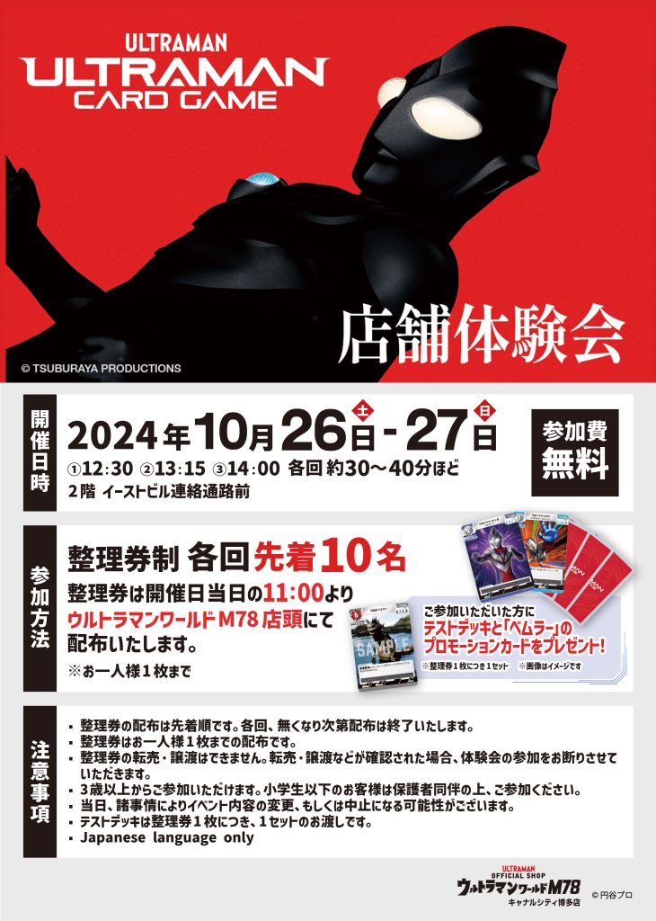 ※参加いただくための整理券を開催当日11:00よりキャナルシティ博多 センターウォーク南側B1階「ウルトラマンワールドM78」店頭で配布します。