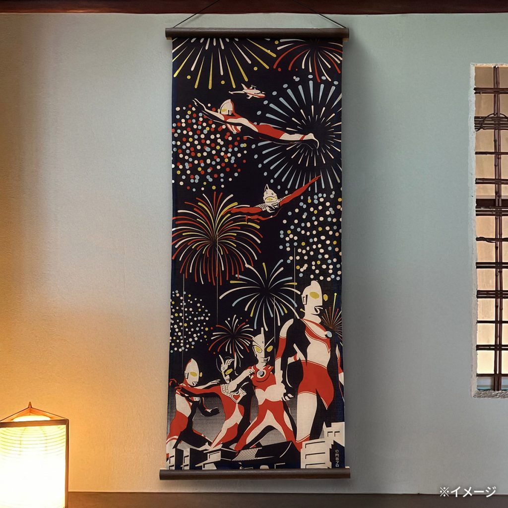夏の夜空に咲く花火を背景にウルトラ6兄弟の雄姿がかっこいい手ぬぐいが登場♪