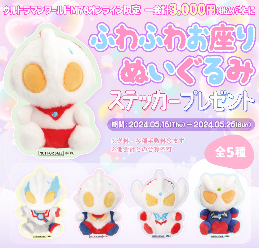 3月12日(木)よりM78オンラインにて再販となりました「M78ウルトラマン ふわふわお座りぬいぐるみ」の受注生産受付を行っております。